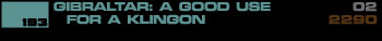 | The appearance of a time-travelling, rule-flaunting Federation starship prompts the Klingons to remind them that some rules just shouldn't be broken. |